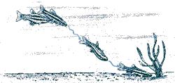 Икринки в пенные гнезда, плавающие на поверхности, как это показано на схеме 9, откладывают популярные, хорошо известные аквариумистам лабиринтовые рыбки (петушки, лялиусы, макроподы, гурами и др.). Но есть рыбки, строящие пенные гнезда под широкими листьями ближе к поверхности воды. К таким, например, относятся сомики рода хоплостернум и дианема, которые выбирают место для постройки пенного гнезда под широким плавающим листом (например, нимфеи). Если в аквариуме нет таких растений, их можно заменить плавающими пластинками из пенопласта (вниз глянцевой стороной) или пластиковыми тарелочками.