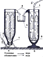 Среди цихлид есть рыбы фитофилы, откладывающие икринки на листьях растений, например скалярии. Они предпочитают наклонные плоскости, расположенные на средней глубине от поверхности воды. Скаляриям не всегда дают возможность выходить потомство, отбирают у них икру часа через два после нереста и переносят вместе с субстратом в отдельный сосуд. Листья при этом (чтобы не портить растения) заменяют на пластиковые или на пластины, закрепленные под водой под углом, как это показано на схеме 6. Скалярии быстро привыкают к такой замене и впоследствии охотно откладывают икру на искусственный субстрат. Скалярии, у которых икру не отнимают, переносят выклюнувшихся личинок на другой лист и, если у них не пропал родительский инстинкт, продолжают за ними ухаживать.