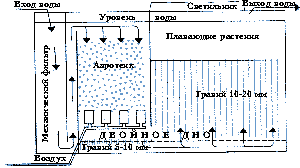 Конструкции заимствованы у рыбоводов производства, которые давно уже применяют промышленные методы выращивания товарной рыбы. Так, молдавские ученые в 1986 г. при отработке в лаборатории технологии выращивания растительноядных рыб (толстолобиков) в качестве биологической модели использовали аквариумных рыб — зеленых лабео, а для их разведения (инкубации икринок и выкармливания мальков) применяли несложную установку, которая состоит из емкости овальной или круглой формы высотой 25—30 см и вместимостью не менее 100—150 л (такую емкость могут изготовить аквариумисты, умеющие работать с оргстеклом). В оборудовании подвешено инжекторное устройство, создающее течение воды со скоростью до 40 см/с. При отсутствии инжектора его заменяют повешенным в центре на кронштейне электромоторчиком с удлиненной осью и винтом, закрепленным на этой оси так, чтобы при вращении создавалось течение воды по кругу. Погруженные в воду ось и винт защищают сеткой. Такую установку можно рекомендовать для разведения рыб-пелагофилов, у которых икра выметывается в толщу воды и проходит свое эмбриональное развитие во взвешенном состоянии (из аквариумных рыбок— это лабео, боции, некоторые амурские рыбы).