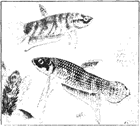 Интерес мой все продолжал возрастать. С нетерпением я ждал появления мальков; ежедневно начал присматриваться к аквариуму, не увижу ли плавающих отдельных крошек-экземпляров; но дни за днями проходили, а удовлетворения моему желанию не получалось,— мальков не было. Рыбки мои то поочередно, то вместе находились в яме-туннеле и как бы присмирели, т.е. не бросались постоянно, как прежде, на приближающегося человека.